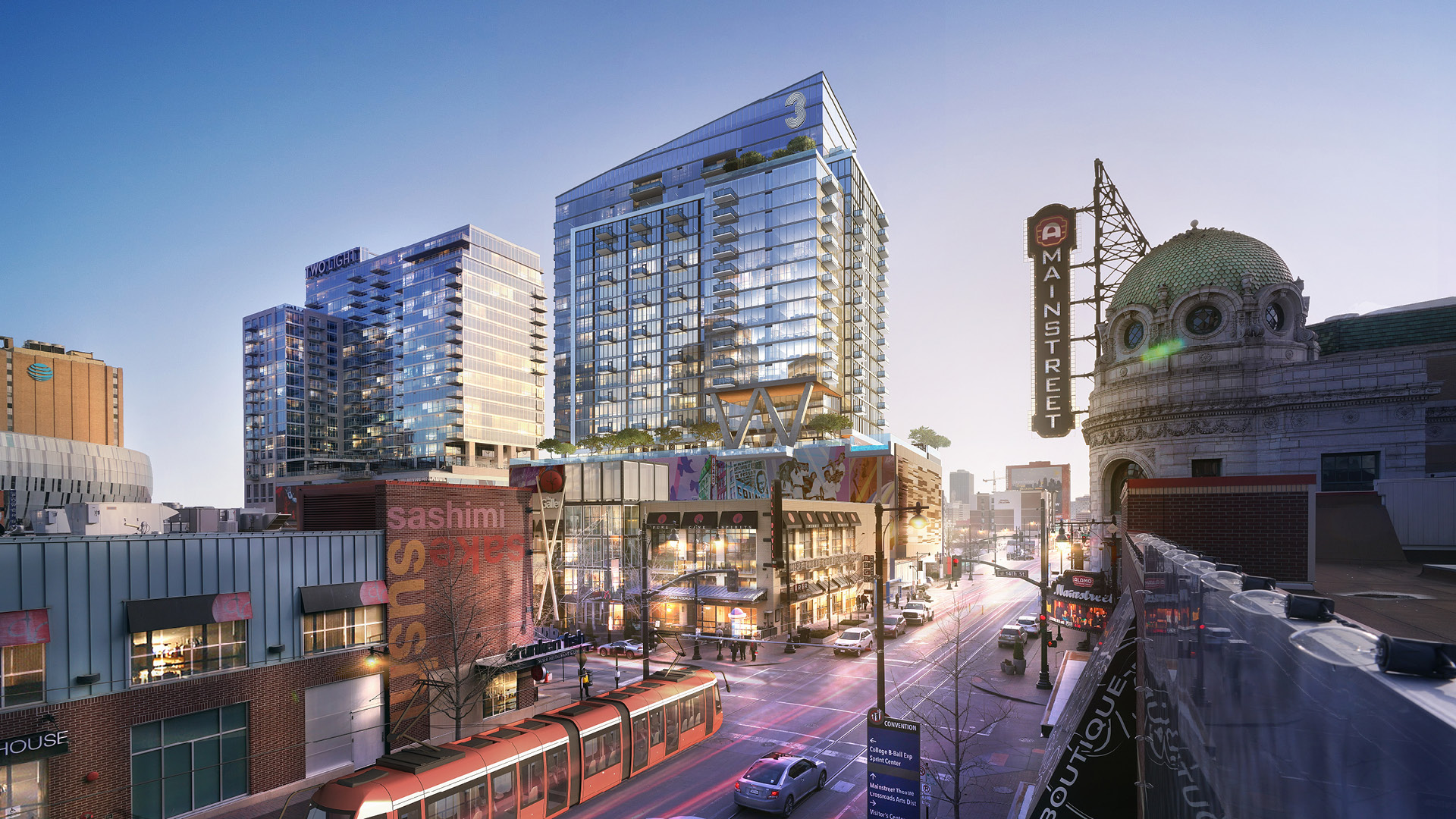 Following the success of its predecessors One Light Luxury Apartments and Two Light, Three Light’s construction begins the third stage of luxury living in the Power & Light District. Situated at the vibrant intersection of the Power & Light District and Crossroads Art District, Three Light will bring another 450 residents to downtown. The 26-story, 288-unit building will feature 19 floors of studio, one bedroom, two bedroom and penthouse apartments, a seven-story garage with 472 parking spaces and 7,600 sq. ft. of retail space on the first floor. Units offer floor-to-ceiling windows with inspiring views of the city, gourmet kitchens, luxury Quartz countertops, private balconies, finishes typical of high-end condominiums and more.