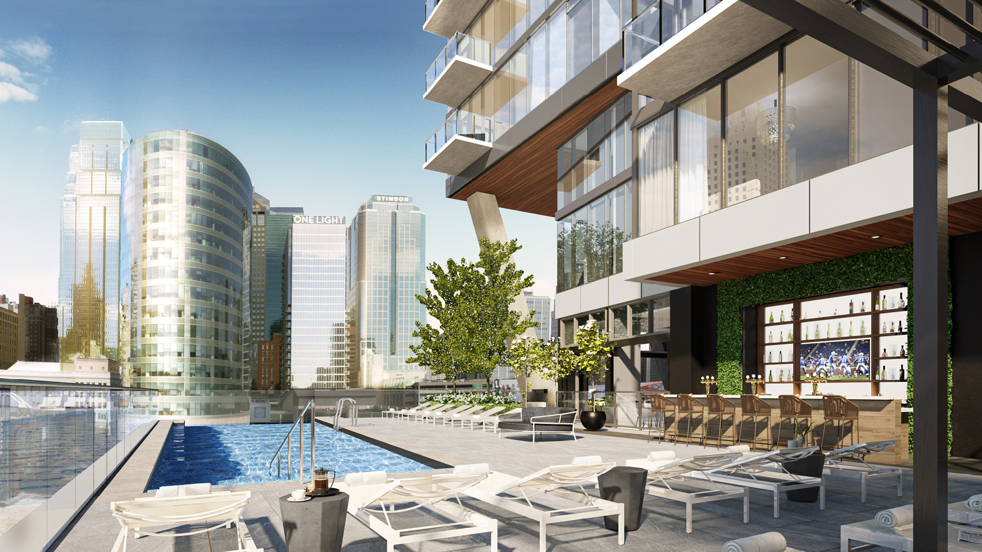 Like its sister properties, Three Light will boast a suite of amenities that will rival any apartment or condo building anywhere in the United States. The building will feature over 30,000 sq. ft. of indoor and outdoor amenity space including an exterior deck overlooking 14th Street, infinity pool, indoor-outdoor bar, demonstration kitchen and theater room. Additionally, Three Light will have a sky bridge directly above Walnut Street linking it to Two Light, allowing residents of both towers to share their buildings’ social amenities.