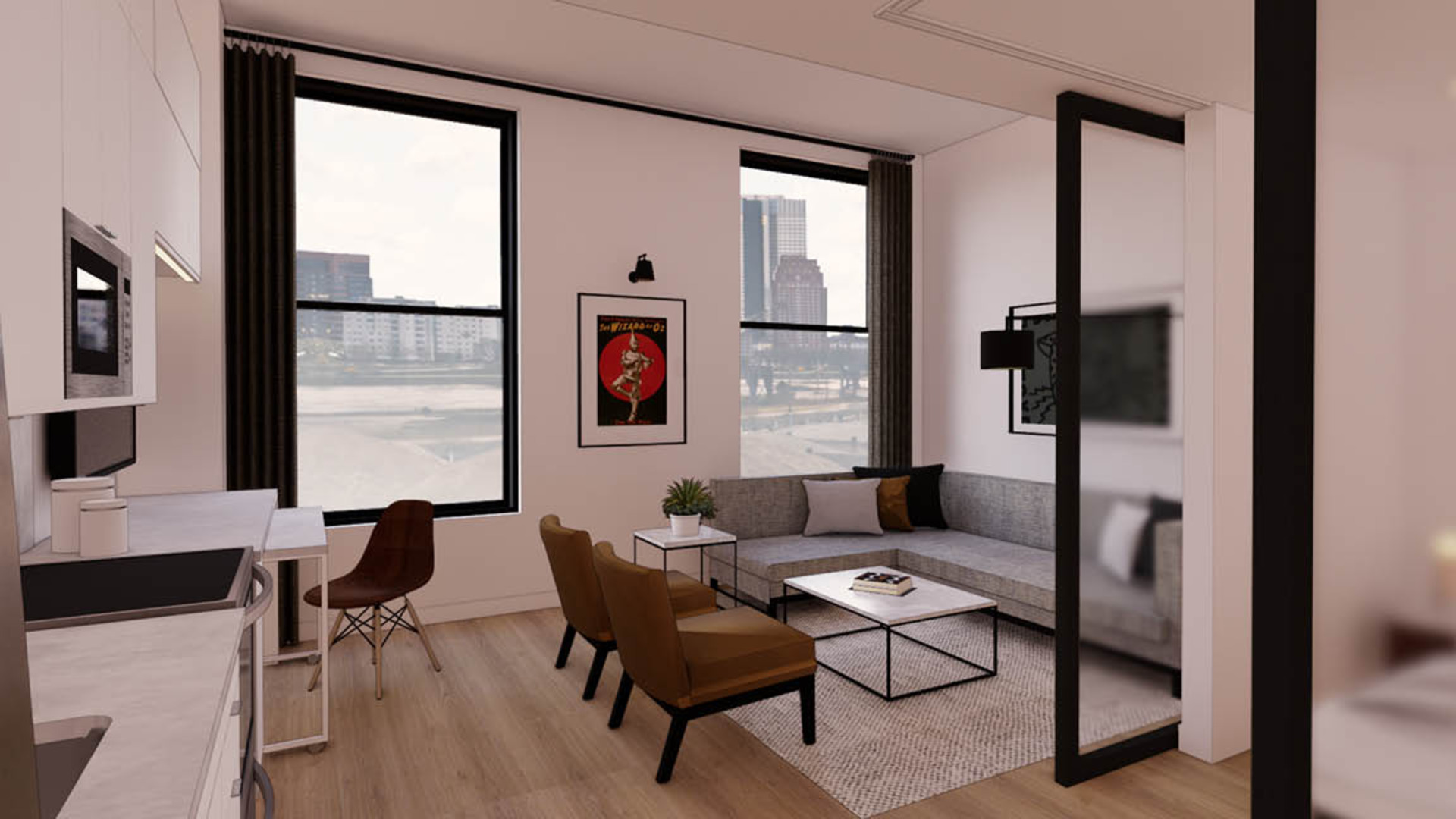 The historic 12-story Midland office building located adjacent to the Midland Theatre will transform into The Midland Lofts, a vibrant one-of-a-kind living community and apartments with multiple price points for renters. Designed by local Kansas City architecture and design firm, Helix, plans reflect the rich history and unique character of the Midland office building and theatre, while channeling the fine finishes and design of One Light, Two Light and Three Light Luxury Apartments.