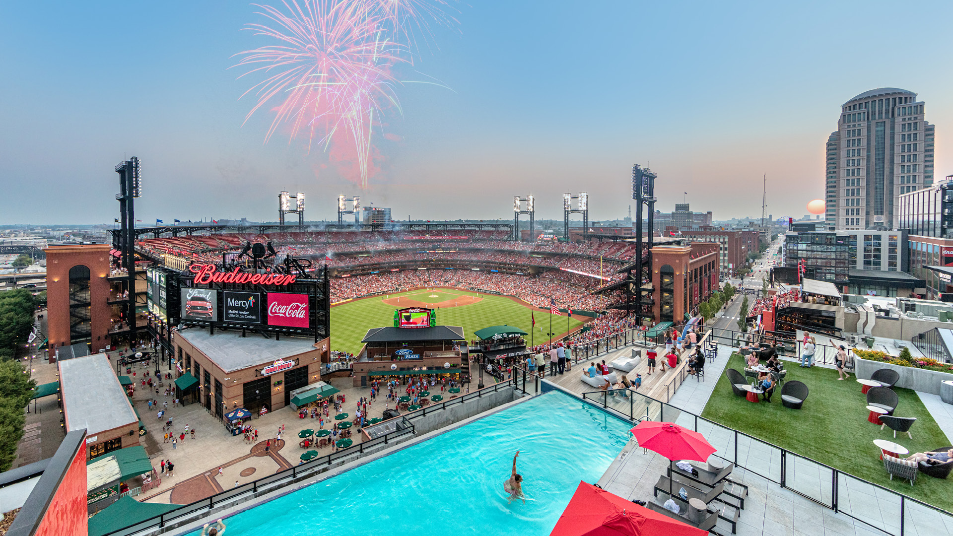 • An expansive outdoor terrace with direct views into Busch Stadium